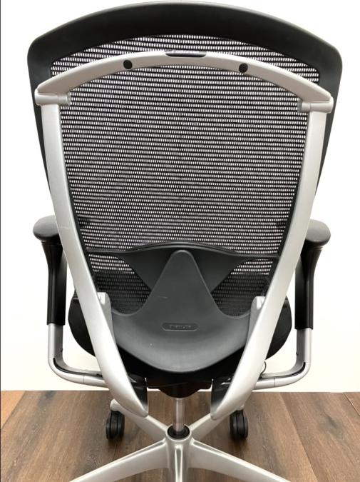 【世界で認められた革新的タスクチェア!人間工学に基づいた快適な座り心地を実現!】■オカムラ(okamura)製 コンテッサ(Contessa)チェア ハイバック 肘付き 背面メッシュ ■可動肘・ランバーサポート付 ■ブラック ※肘スレ有