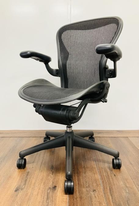 【圧倒的人気・知名度を誇るワーキングチェア!】■ハーマンミラー製 アーロンチェア Bサイズ 可動肘 ※ランバーサポート無・背ホツレありのためお安く!【Herman Miller Aeron Chair】【在庫入替セール品!(本在庫限定価格)】A00961537サーキュラーバリューCO2削減量の算出について