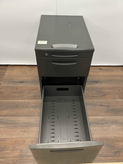 人気商品オカムラ製SDシリーズのレアカラー:ブラック色の3段ワゴンです。