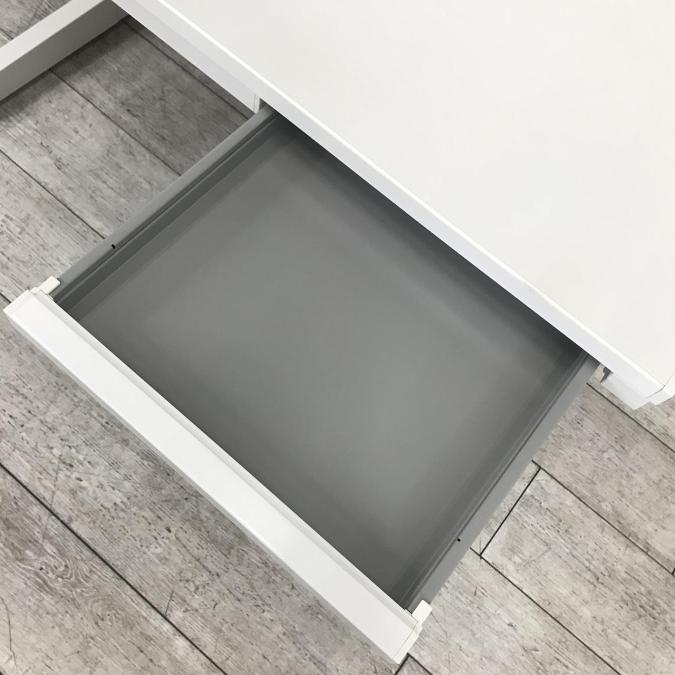 【幅1100㎜でコンパクト!人気の清潔感あるホワイトカラー!】■ウチダ(UCHIDA) スカエナシリーズ 平机 引き出し付 W1100×D700mm ■ホワイト ■配線Kタイプ
