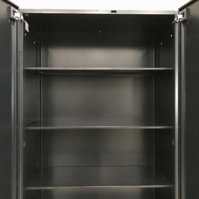 - 両開きタイプは扉が180度開き、通路の邪魔になりません。ラテラルタイプは引出しが限界まで出せ、出し入れ楽々。