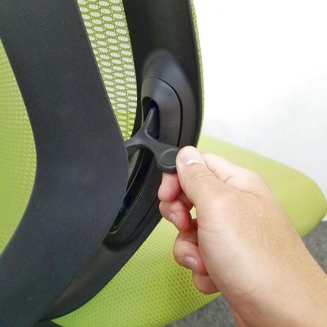 - 座面右下のダイヤル操作で、リクライニングの強弱調整が行えます。これまでのダイヤル式よりも、少ない回転数で、最弱?最強の調整が可能です。