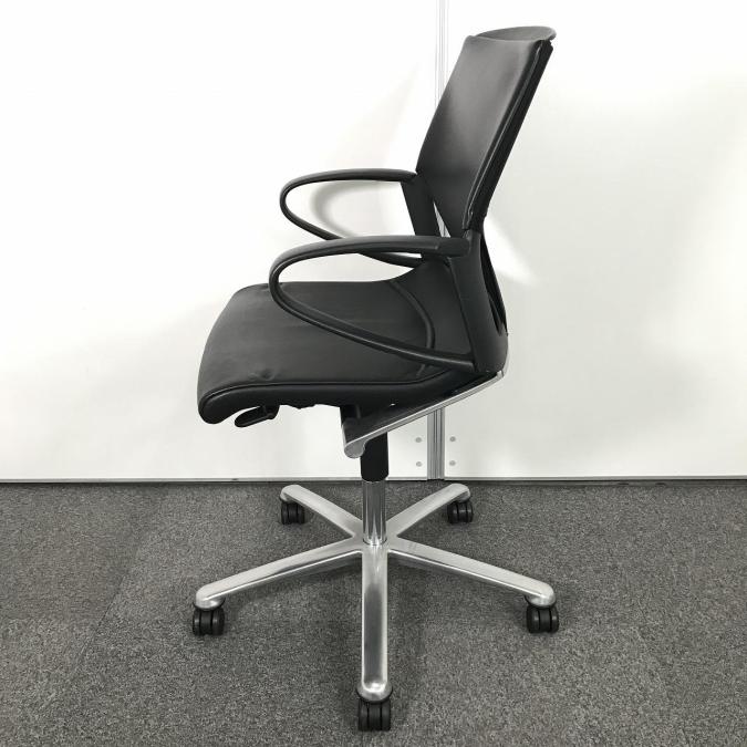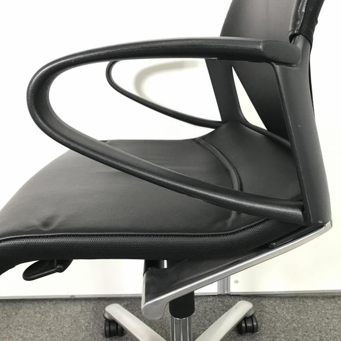 【応接室にも執務室にもおすすめのデザイン!ドイツの有名老舗メーカー製の人気シリーズ!】■ウィルクハーン(Wilkhahn) モダス 肘付き ハイバック キャスターチェア ■固定肘 ■革張り ■ブラック 【海外ブランドの上質デザインチェア!】【入替セールにつき20%OFF!】- つくば店