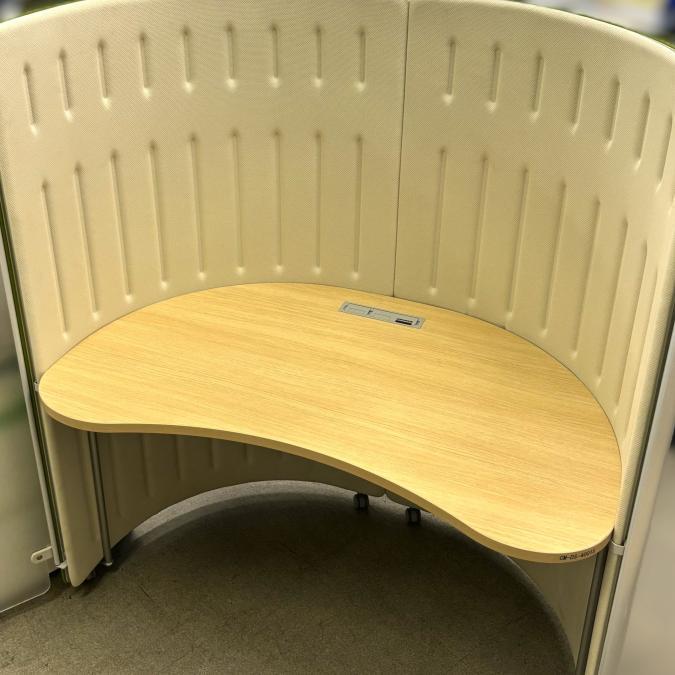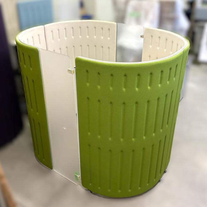 【在庫入替セール品】【1台限定!】テーブル・アクリル戸付のレア商品! オカムラ マッフル 個別ブース グリーン 配線ダクト付き- なんば日本橋店