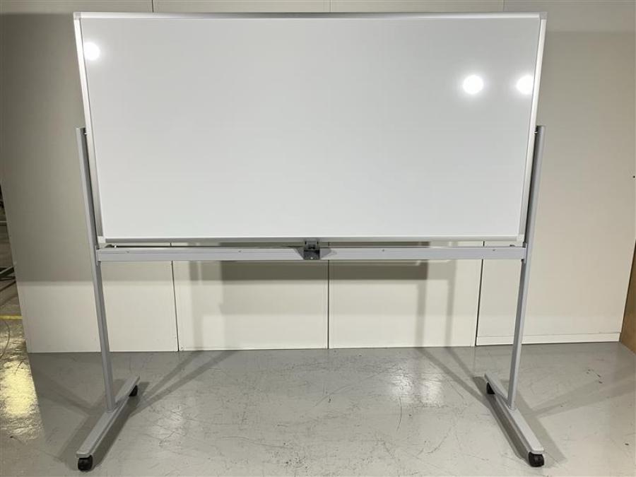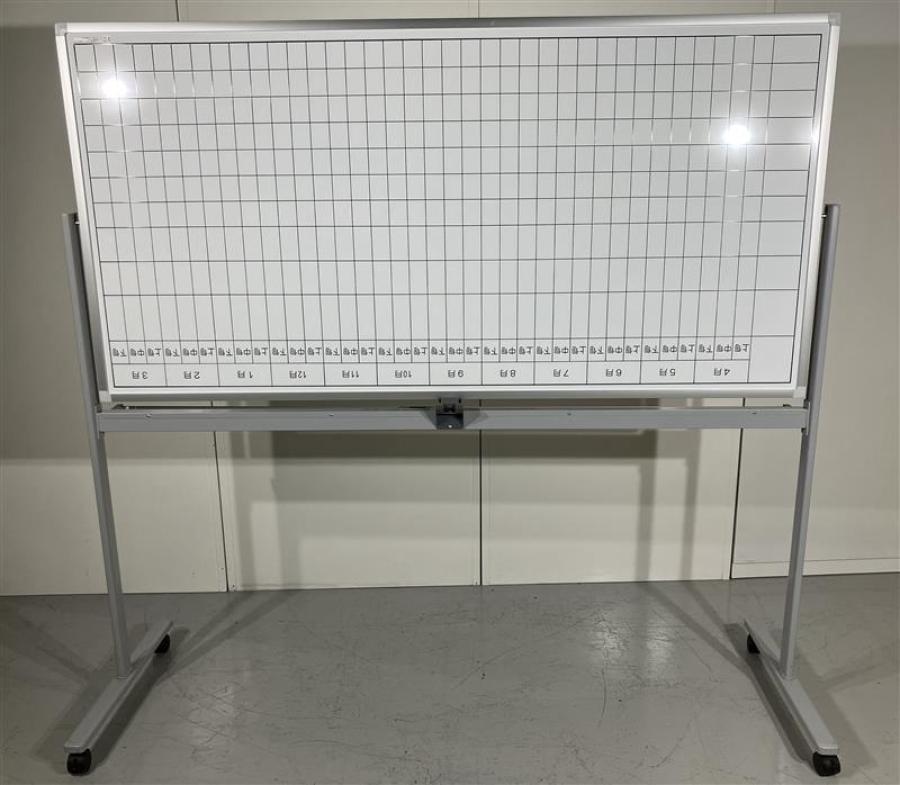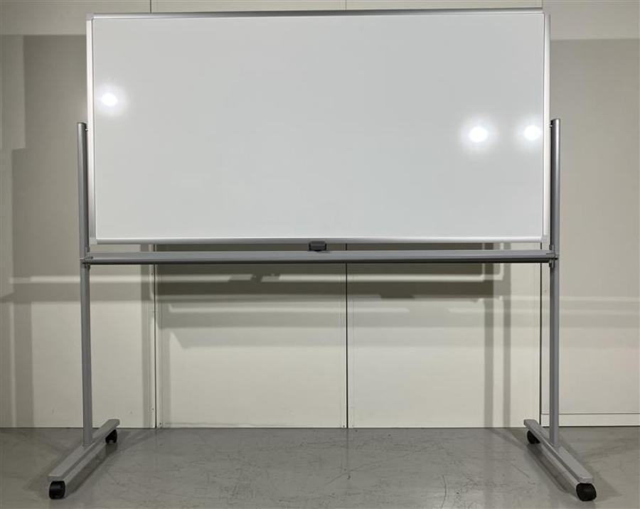 【ミーティングの必需品!】■両面ホワイトボード 脚付き 片面が年間予定表 片側ペントレイ ボード回転可能 ■ホワイト ■キャスター付【キャスター付きで移動らくらく!】- 大阪・堺店