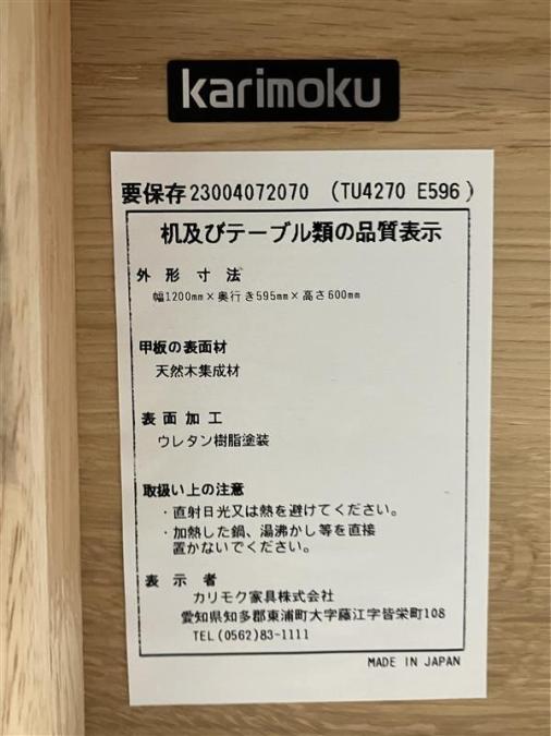 【2023年製】【展示品】カリモク ダイニングテーブル W1200 ピュアオーク 北欧- デザイナーズ家具センター