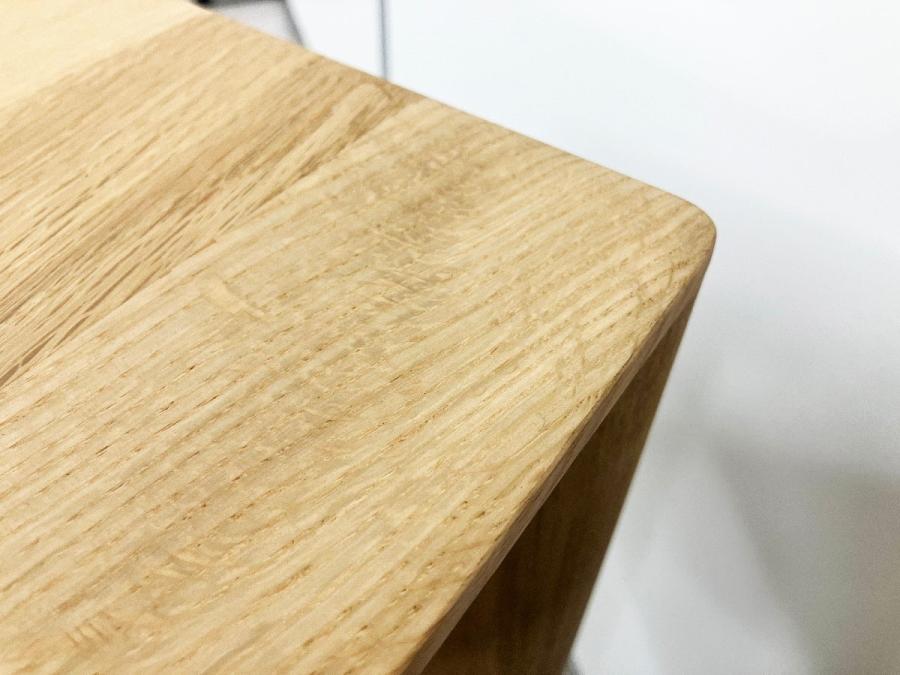 - 目立つ箇所あり傷・凹みが多数、深い傷・凹みが一部ある。(例、天板、幕板、棚板、サイド部分、脚部等にある。)