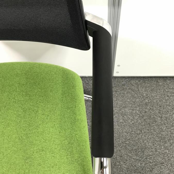 【1脚限定】【座り心地&デザイン性に富んだ海外メーカー製チェア!】■肘付スタッキングチェア ■座面グリーン×背面ブラック ■背面メッシュ ■固定肘☆★大特価セールはこちらのキーワードで検索☆★→→【大放出】- 埼玉本店