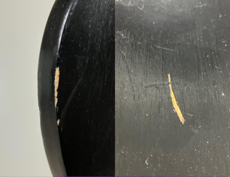 - 目立つ箇所あり傷・破れ・ほつれ・へたり・しわが多数または深い傷・破れ・ほつれ・へたり・しわが一部ある。※座面・背もたれ、シェル、脚部等にある。