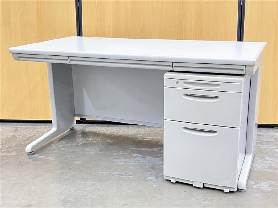 【関西倉庫在庫品】■オカムラ(okamura)製 SD-Vシリーズ 片袖机 幅1400㎜ ■色:ライトグレー【オフィスの定番! ワークスペース広々の幅1400㎜! 収納も充実で使いやすい!】