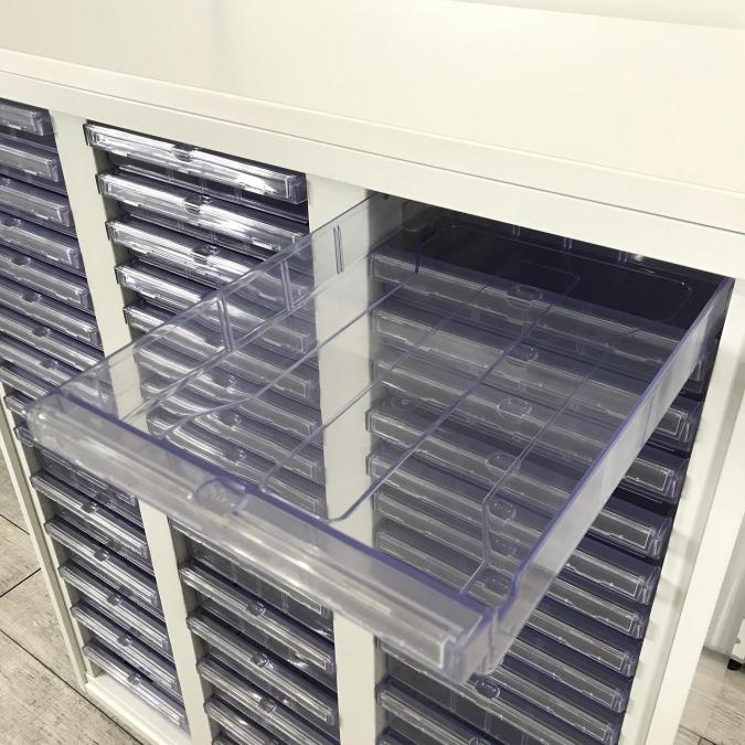 A4用紙サイズのトレーが3列・16段(浅型6段/深型10段)あり、