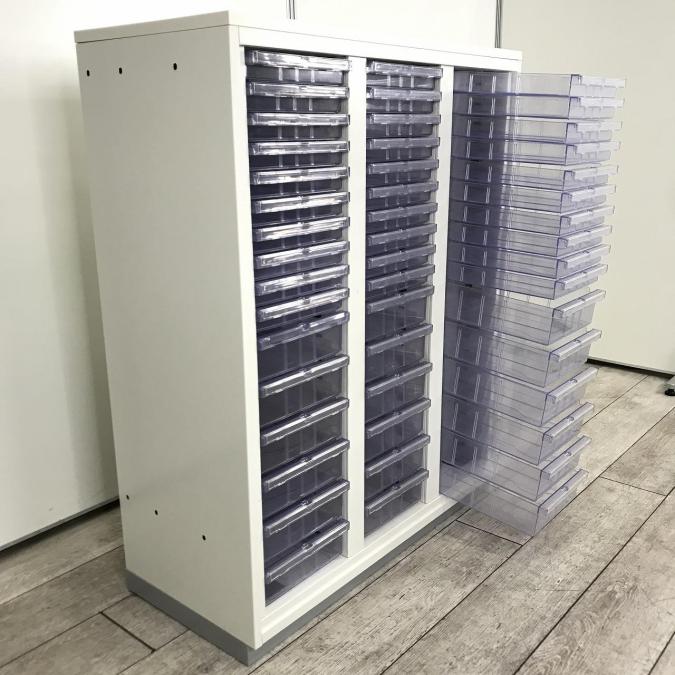 【中古】 プラス/PLUS ローキャビネット/クリスタルトレー 【希少なクリスタルキャビネット!細かい書類整理の仕分けに!】■プラス製 クリスタルトレー 深型(A4)11×3列 ※マテハン本舗の中古商品は、千葉県柏市に在庫がございます。