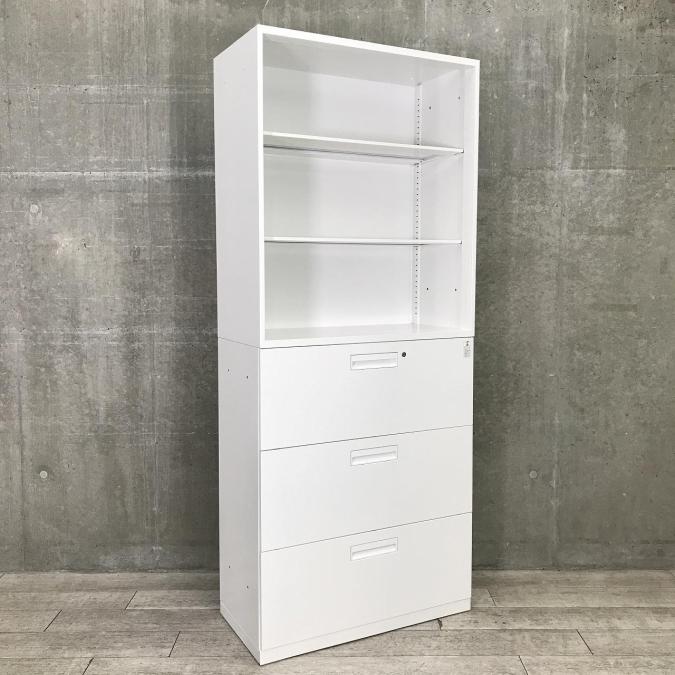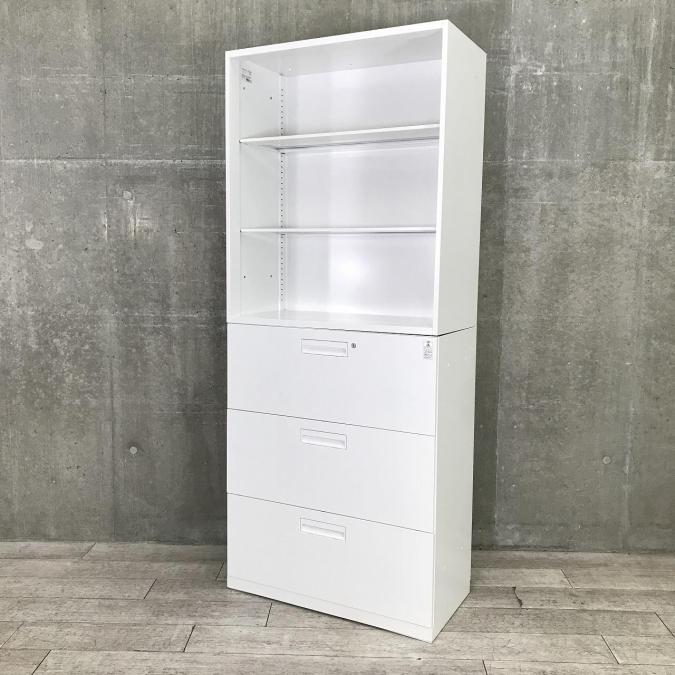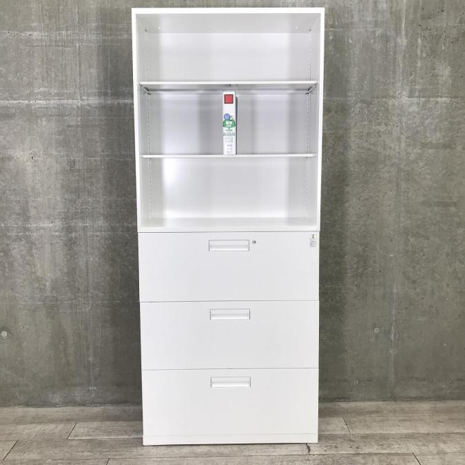 【見える化にフォーカスしたオープン書庫と3段ラテラル書庫のセット!】■コクヨ(KOKUYO)製 エディア(EDIA) オープン書庫+3段ラテラル ハイキャビネット ■ホワイト ■シリンダー錠 【弊社使用欄:A00983438 / A00974621】- 日本橋店