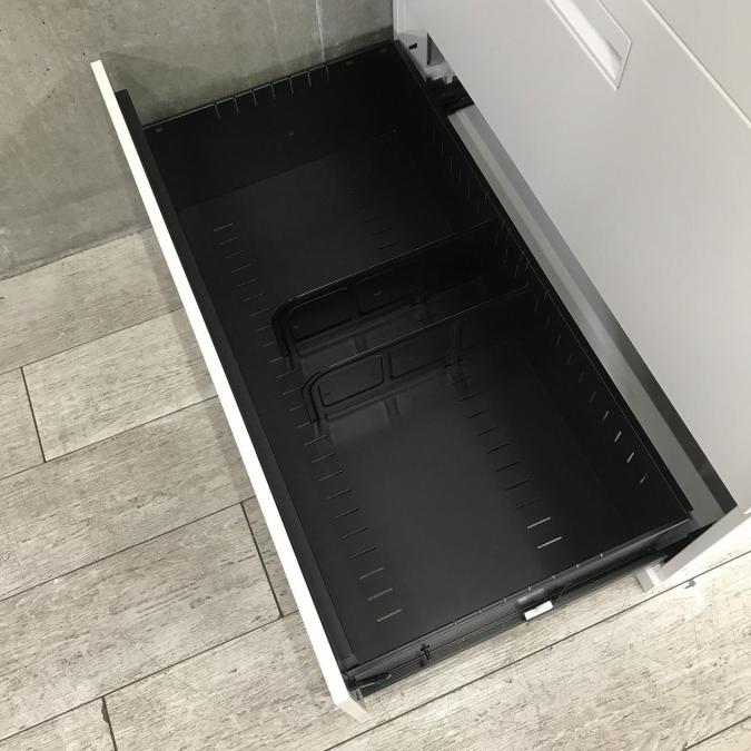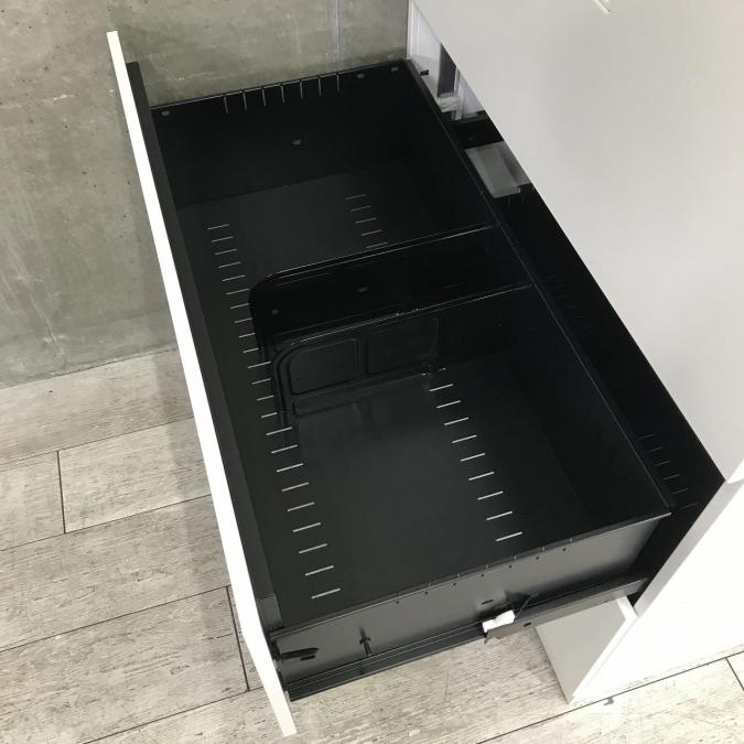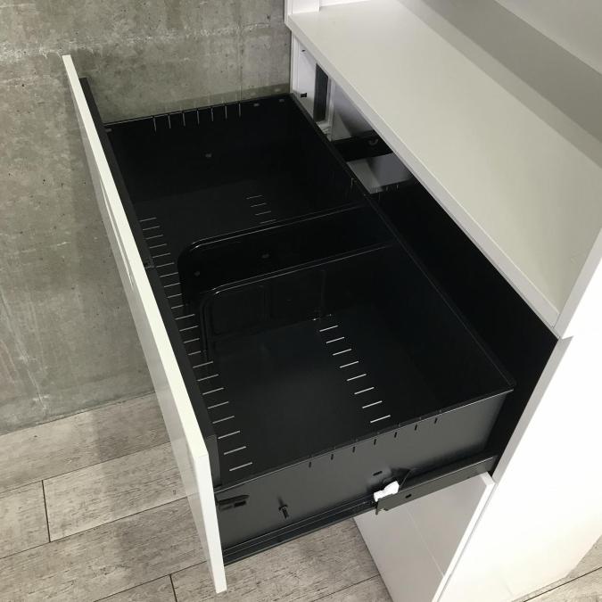 - 両開きタイプは扉が180度開き、通路の邪魔になりません。ラテラルタイプは引出しが限界まで出せ、出し入れ楽々。