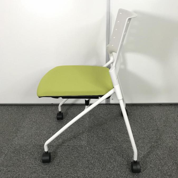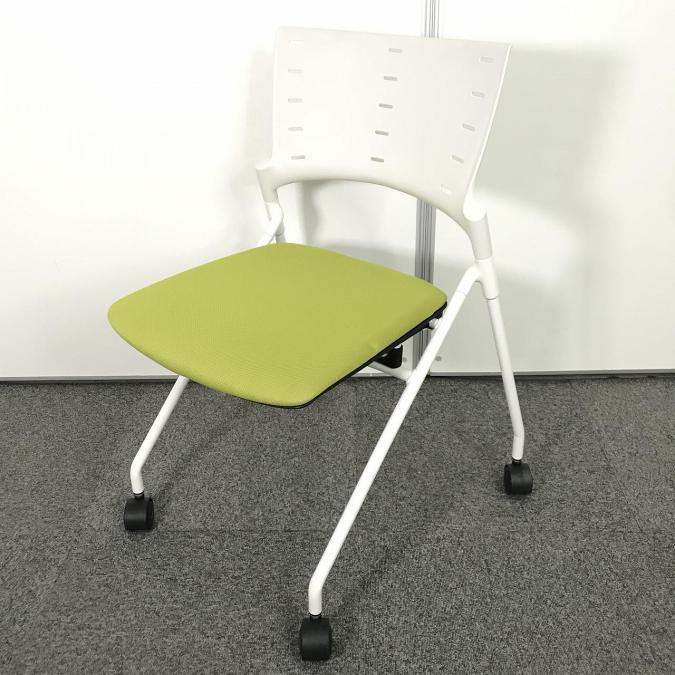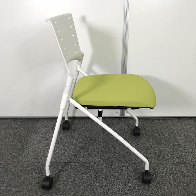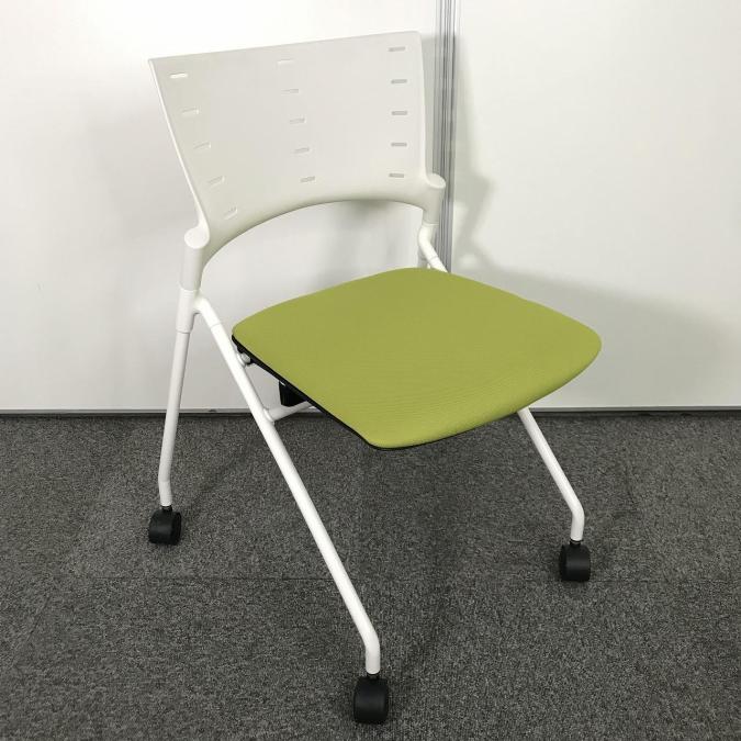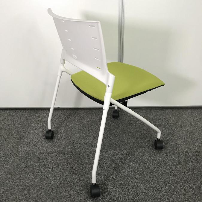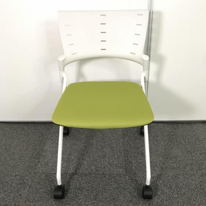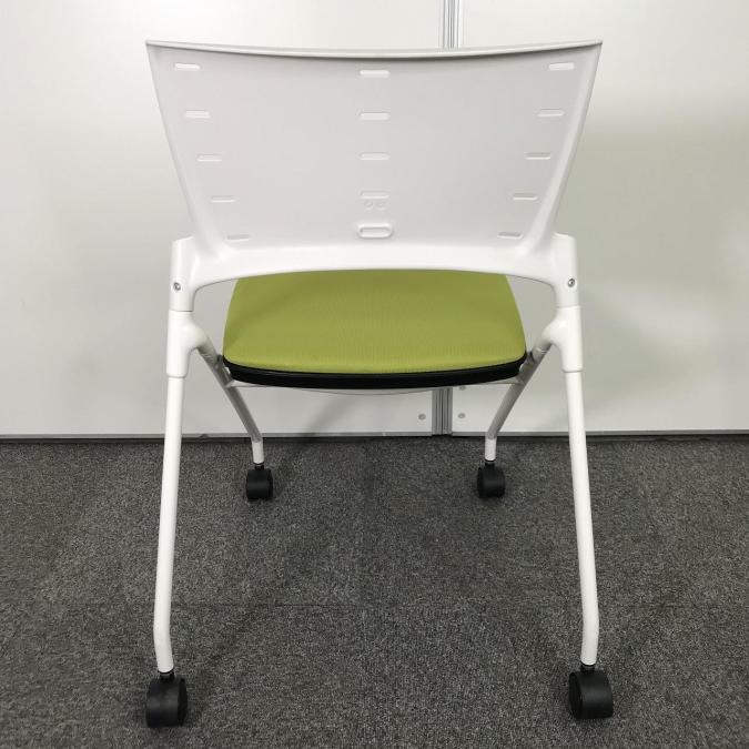 明るい会議室を!雰囲気を上げる快適なミーティングチェア!ホワイトフレーム×グリーンカラー!【在庫入替セール品!】 ■イトーキ/マノス/モスグリーン ネスティングチェア- 立川・八王子店