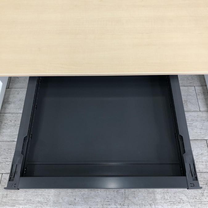 【上長デスクの定番W1400平机!配線カバーも充実の高品質デスク!】■コクヨ(KOKUYO)製 iSシリーズ 引き出し付き(右側の引き出し無し) 平机 ■ホワイト×ナチュラル天板- 新大阪店