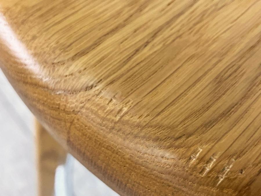 - 目立つ箇所複数あり深い傷・破れ・ほつれ・へたり・しわが商品全体にある。(例、座面・背もたれ、脚部等にある。)