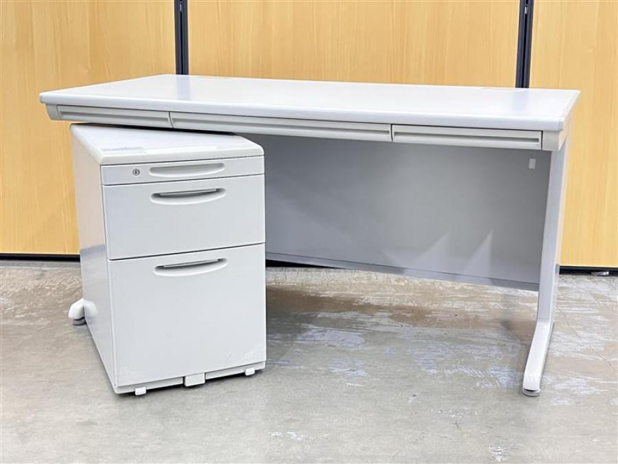 【関西倉庫在庫品】■オカムラ(okamura)製 SD-Vシリーズ 片袖机 幅1400㎜ ■色:ライトグレー【オフィスの定番! ワークスペース広々の幅1400㎜! 収納も充実で使いやすい!】