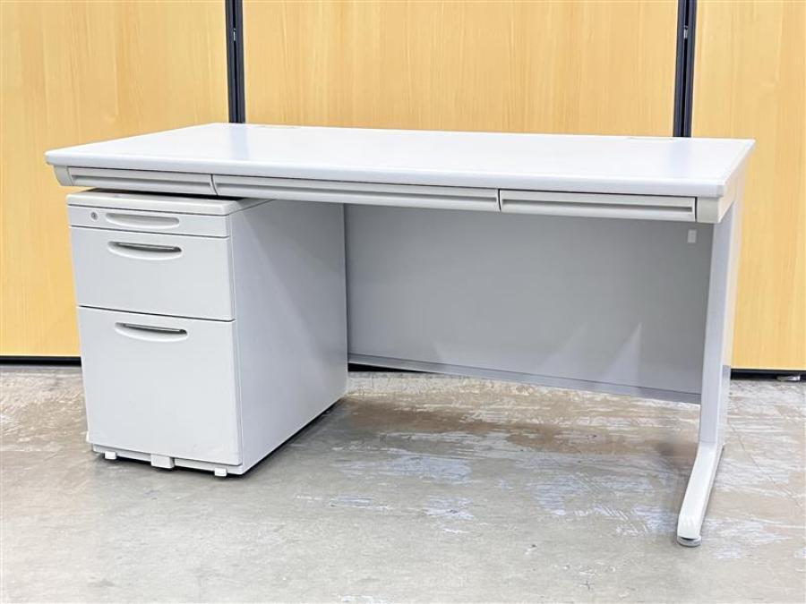 【関西倉庫在庫品】■オカムラ(okamura)製 SD-Vシリーズ 片袖机 幅1400㎜ ■色:ライトグレー【オフィスの定番! ワークスペース広々の幅1400㎜! 収納も充実で使いやすい!】