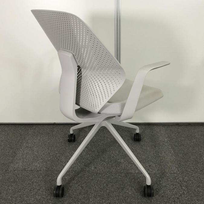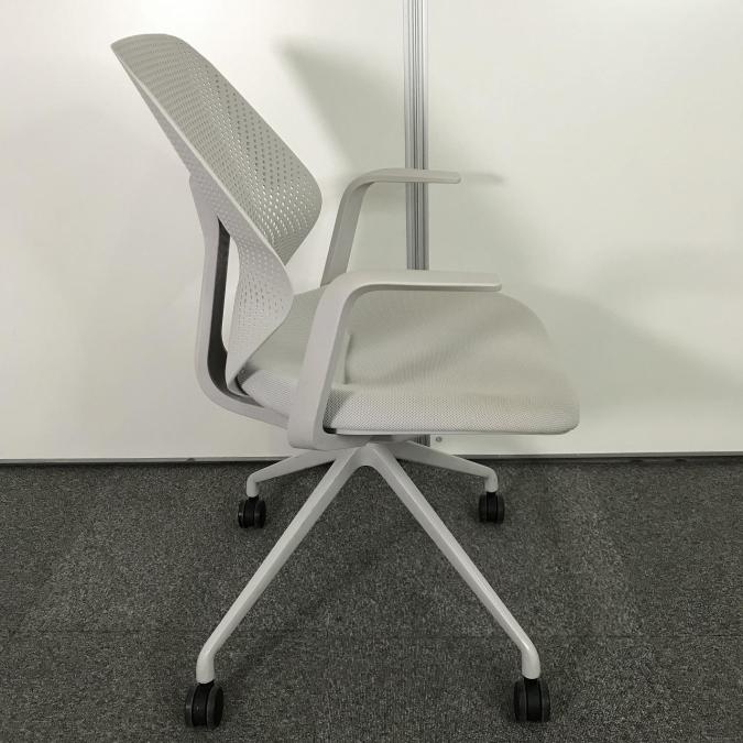【腰回りをしっかりサポート!オフィスに新しい風を吹き込むライトタスクチェア】■イトーキ製(ITOKI) キュアチェア(QuA) ミーティングチェア 固定肘つき ■樹脂メッシュバック 4本脚 ■ライトグレー- つくば店