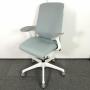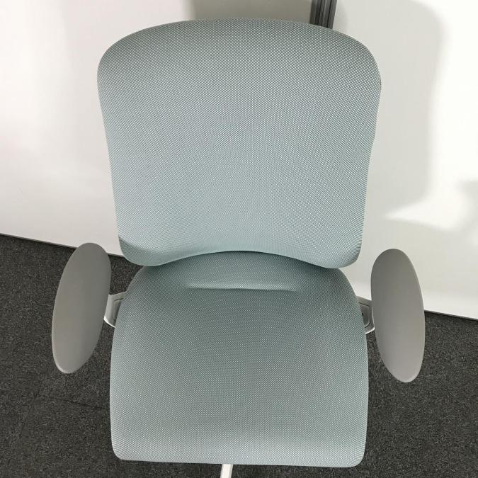 【一人ひとりの身体に寄り添う、至高のフィット感!】■オカムラ スフィア (Spher) ハイバック肘付き ■色:セージ (ライトブルー) 張地:リネット- 池袋店