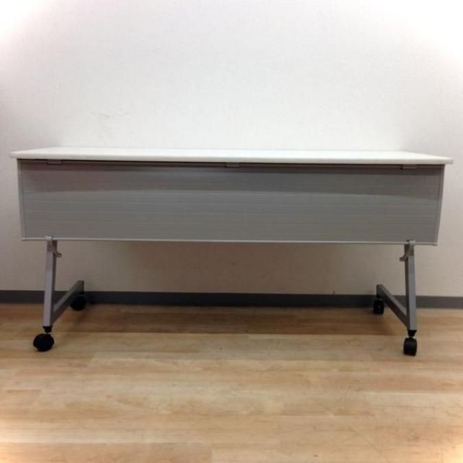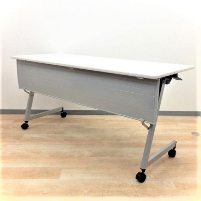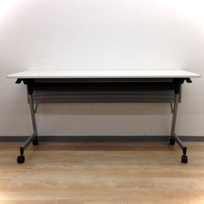 【在庫セール品】【定価9万円】【折り畳み収納可能!サイドスタックテーブル入荷!】■イトーキ ■ホワイト ■W1500×D600 ■幕板付き- 在庫数