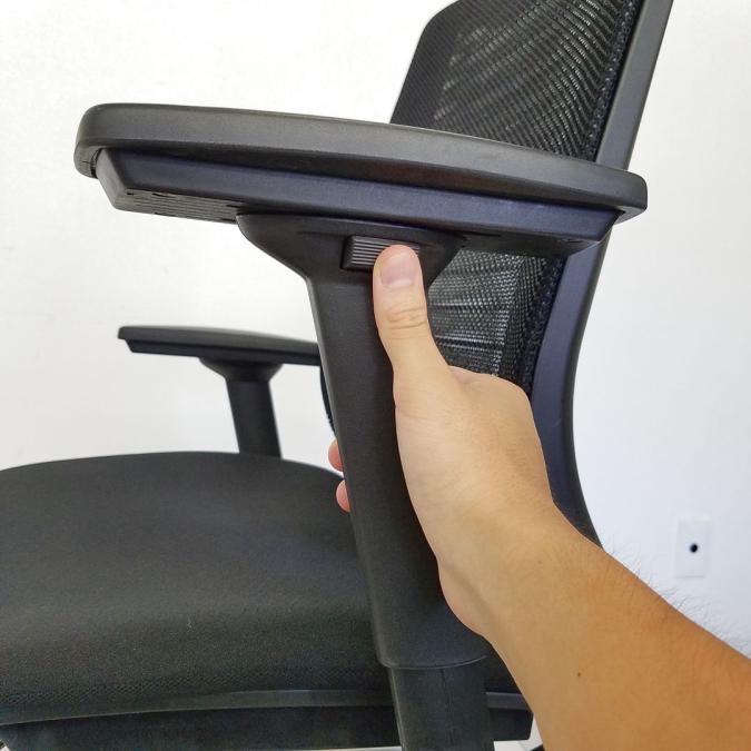 - アームの高さはキャップ下にあるボタンを持ち上げながら上下に調節、アームの位置はアームキャップをつかみ、上下、左右、角度にスライドさせて調節できます。身体の肘はなるべく身体に近づけ、手首とまっすぐになるように調節してください。
