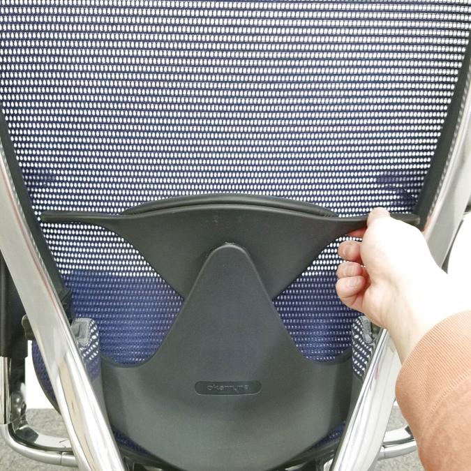 - 座面の前後スライド調整レバーで操作(前後50mm分調整で)できます。(グラデーションサポートメッシュタイプを除く)