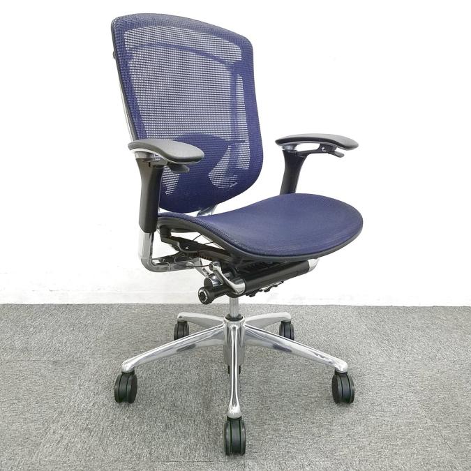 【オカムラ製の最高級チェアが残り1脚限りです!!】オフィスバスターズ 東大阪店 オカムラ製 コンテッサ シリーズ ダークブルー アジャストアーム※可動肘 背/座面メッシュ ランバー 世界で認められた革新的タスクチェア!人間工学に基づいた快適な座り心地を実現! 肘付きハイバックチェア!! 中古 外部倉庫品