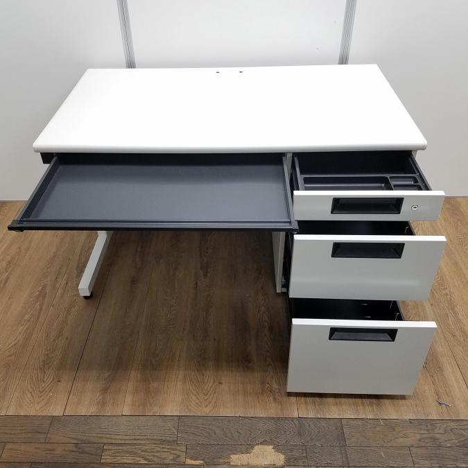 プラス製 フラットラインシリーズ ホワイト 引き出し付き W1200サイズ 定番サイズのW1200サイズ オーソドックスな片袖デスクが入荷! W1200片袖机!!- 京都東寺店