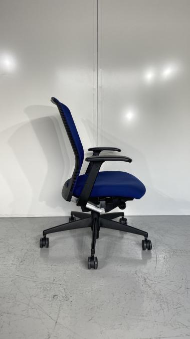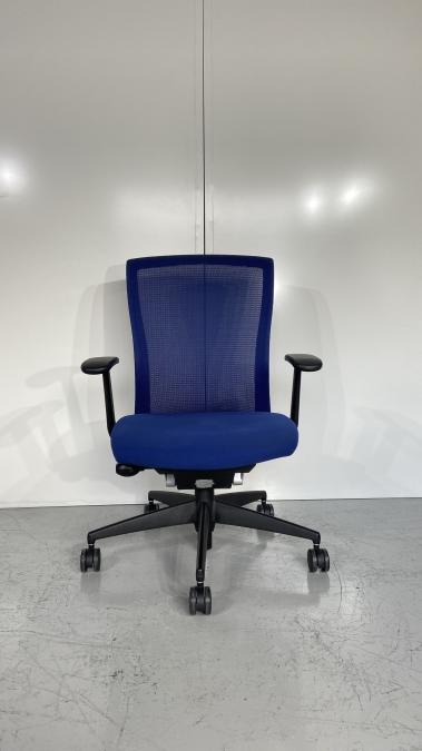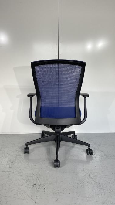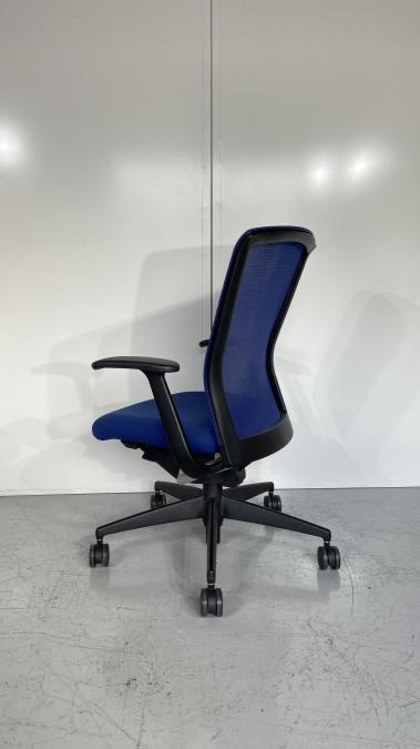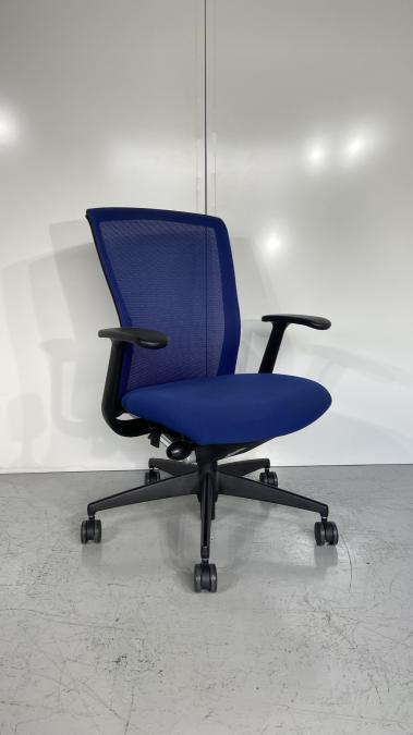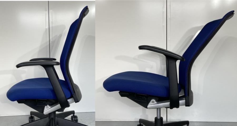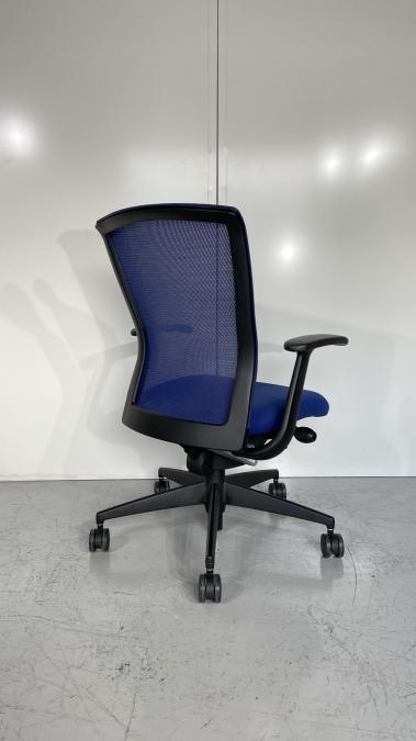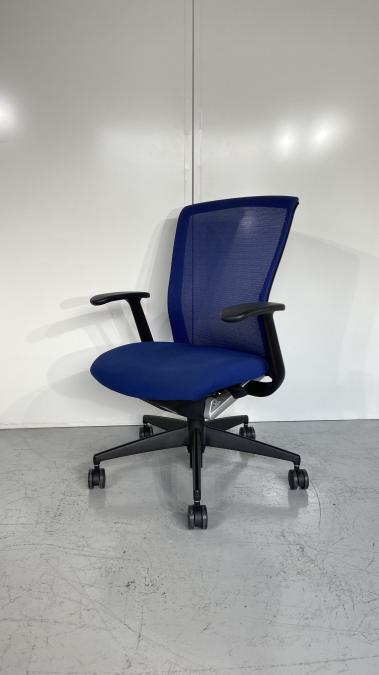 【上半身の動きにフィット・体を包み込むメッシュ張地!】■コクヨ(KOKUYO) フォスターエトス (ETHOS) ハイバック肘付き ■ダークブルー ■固定肘 ■背面メッシュ- なんば日本橋店