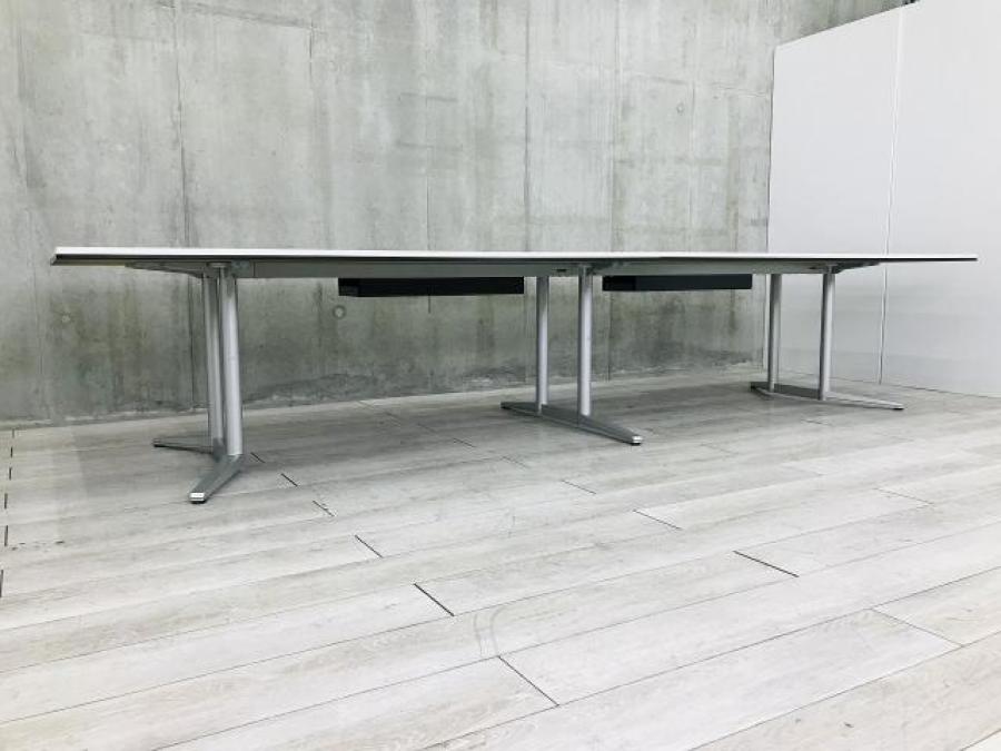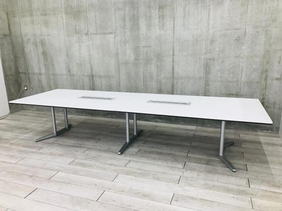 【ワンランク上のカンファレンス空間を演出!】■オカムラ ラティオシリーズ 会議用テーブル W3200mm(8~12名用) 配線ボックス付 ホワイト 【Okamura RATIOⅡ】