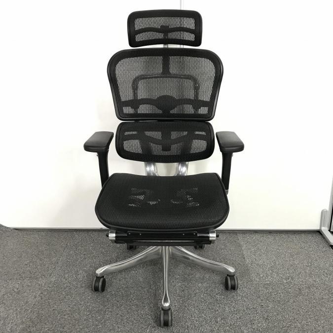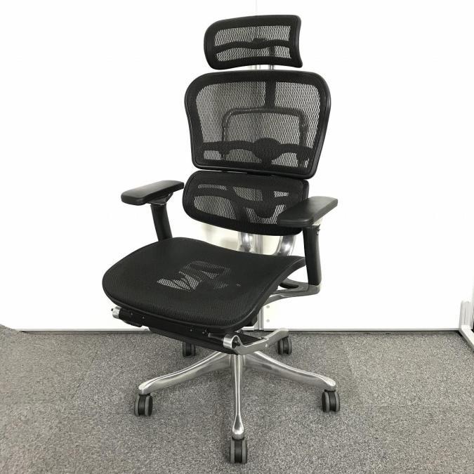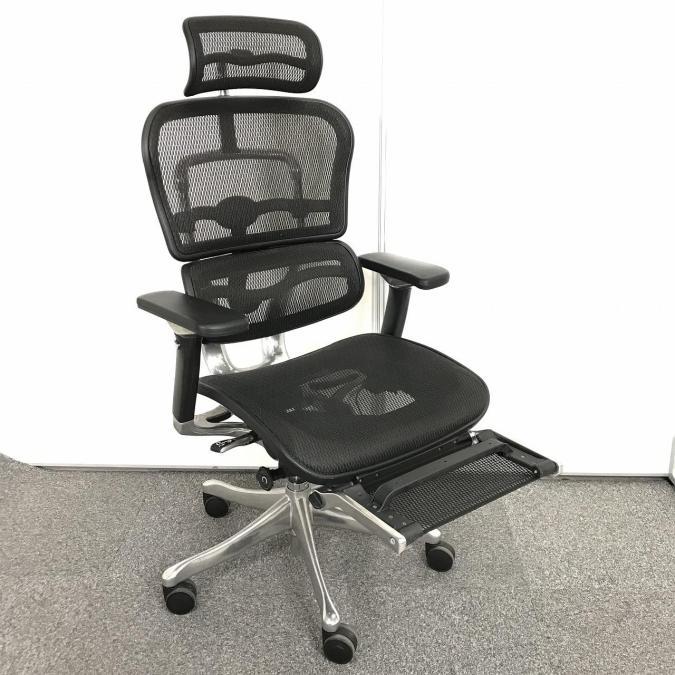 ★在庫限り!【中古希少!人気のヘッドレスト付タイプ入荷!】■エルゴヒューマンチェア 可動肘付 ブラック エクストラハイバック 収納式オットマン内臓!【人間工学に基づいた快適な座り心地!】在庫がある店舗一覧