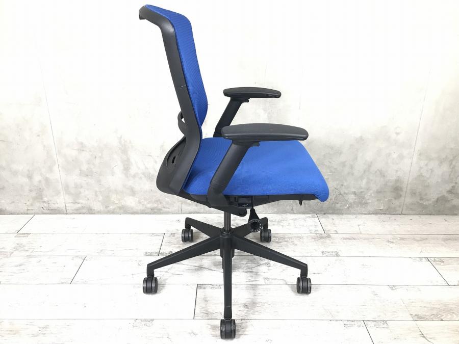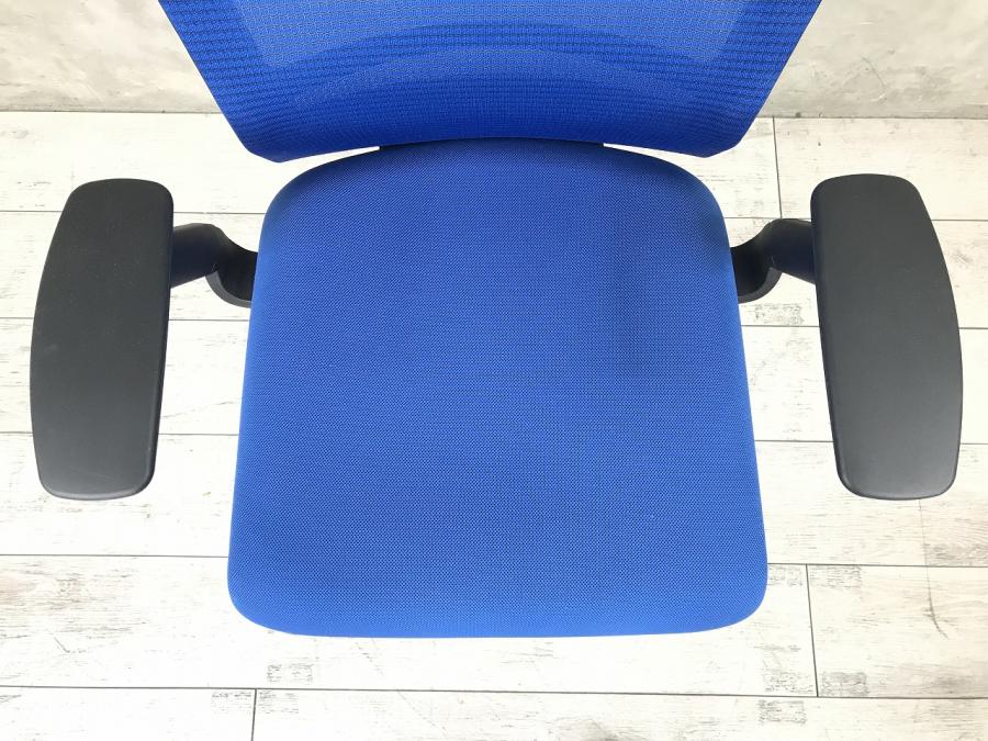【定価約6万円】【洗練されたデザインで大人気!ワンランク上の座り心地】■ウチダ (UCHIDA) エルフィ (ELFIE) ミドルバック肘付き ■可動肘 背面メッシュ ■ハンガー付 ■マリンブルー×ブラックフレーム- 仙台店