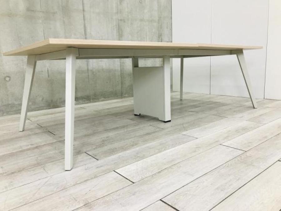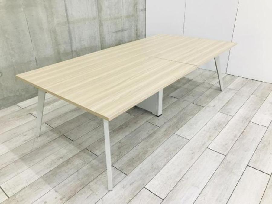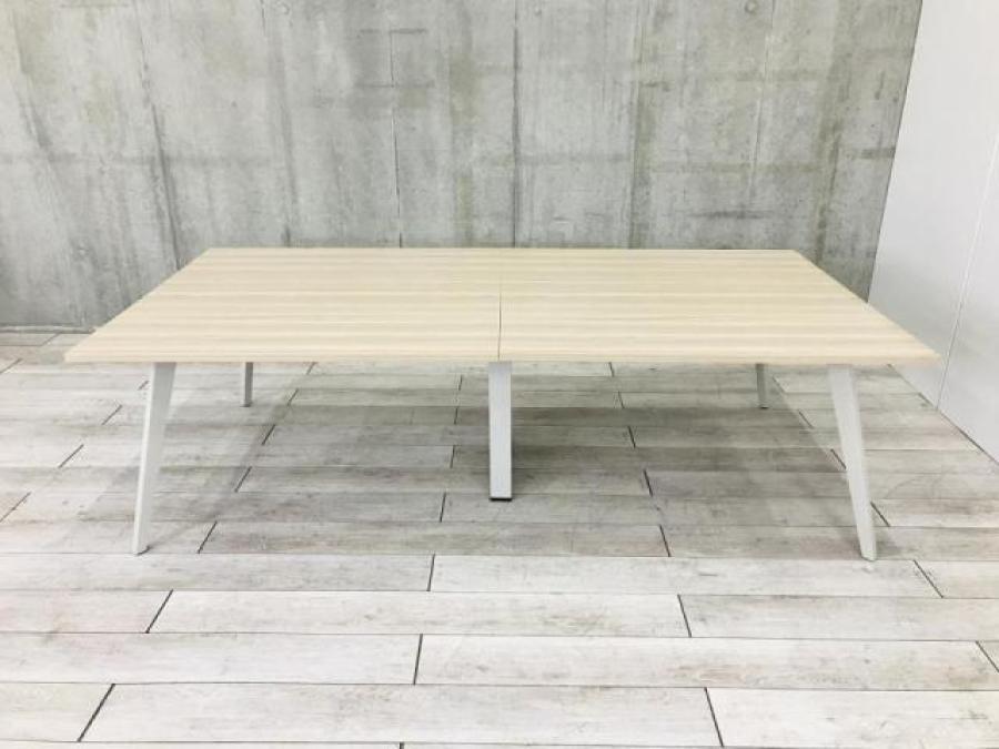 【24/⑫在庫一掃セール】■大型テーブル入荷!明るく優しい印象のオフィスに 幅2400×1200㎜ ■応接用・会議室や休憩スペース! ■ミーティングテーブル ナチュラル天板 ホワイト脚- 福岡南店