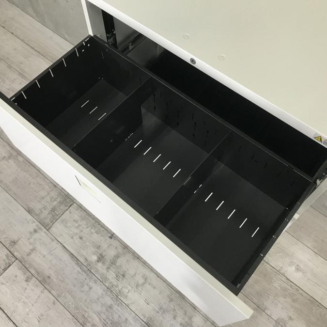 【使いやすさで選ぶならコレ!大容量の三段キャビネット】■オカムラ(Okamura)製 レクトラインシリーズ(Rectline) 3段ラテラル書庫 ローキャビネット ■天板付き ■シリンダー錠 ■ホワイト