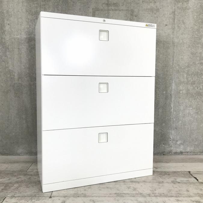【ファイル収納にオススメ!高品質で使いやすい人気シリーズの3段ラテラル書庫!】■オカムラ(okamura)製 レクトラインシリーズ 3段ラテラル書庫 ローキャビネット H1100㎜ ■ホワイト ■シリンダー鍵 ■天板付き(天板:ホワイト) ※日焼け有