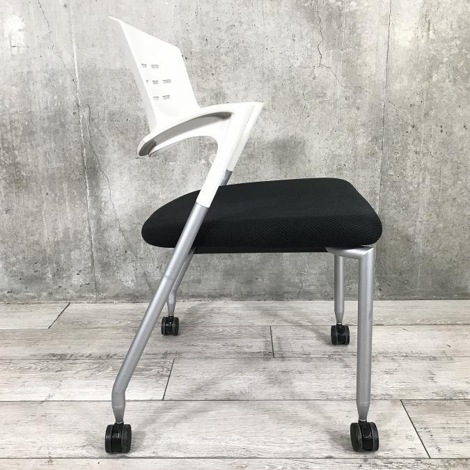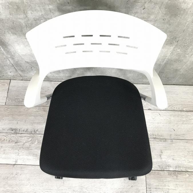 【在庫入替えセール!】【ふっくらクッションで座りやすい!うれしい肘付き仕様!】■イトーキ(ITOKI)製 カクタス スタッキングチェア ミーティングチェア ■肘付き ■背面ホワイト×座面ブラック- 足立・葛飾店