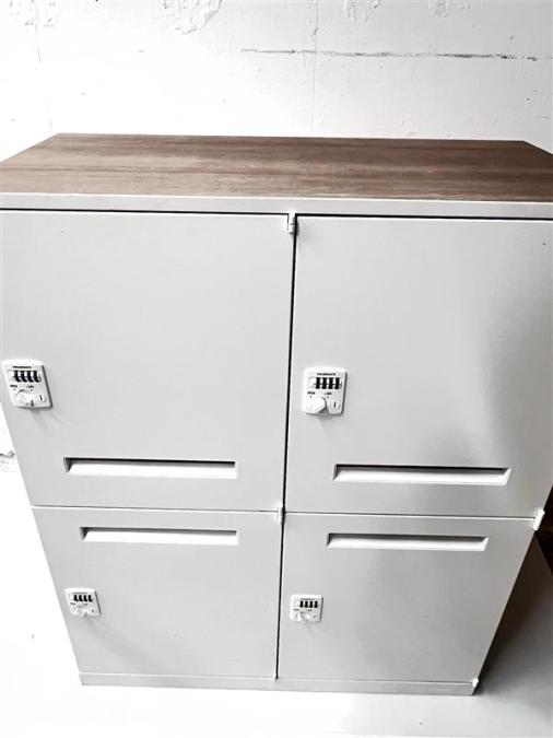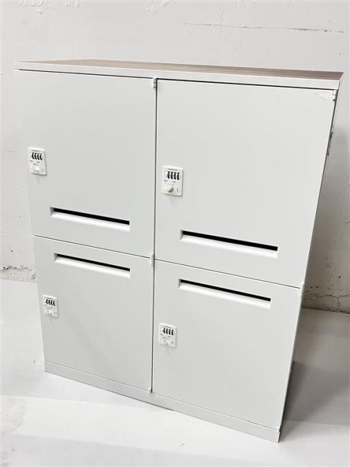 【商品入替のため、残り4台限り】オカムラ製 レクトライン ホワイト 4人用 投函口有り ダイヤル錠 ナチュラル木目調天板 フリーアドレスオフィスの必需品! ダイヤル錠式で鍵の持ち運び要らず! 4人用パーソナルロッカー!!※非常解除キーはついていません