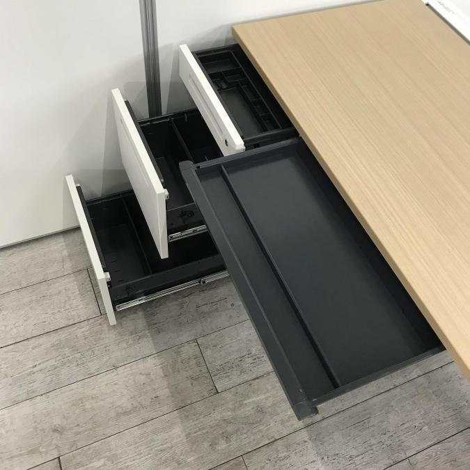 様々なオフィスに溶け込みやすい、シンプルなデザインの片袖机です。