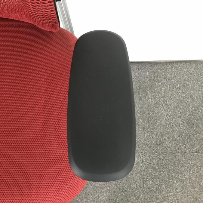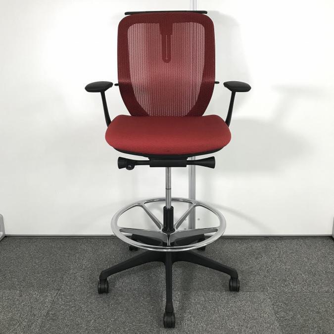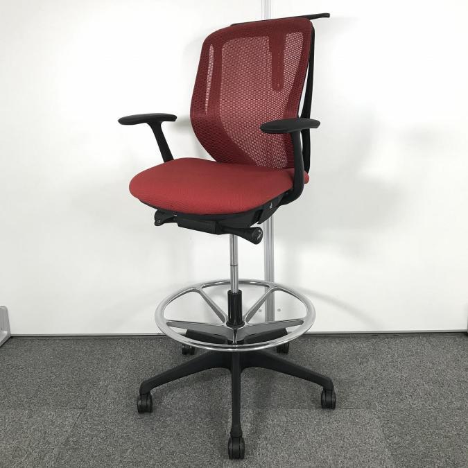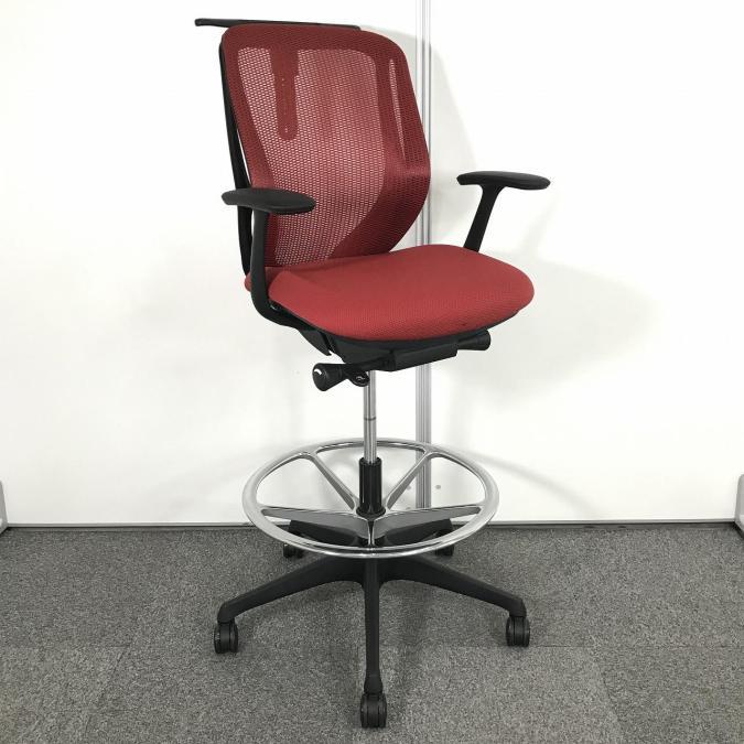 【ご自宅にもハイチェアはいかがですか?】■オカムラ(okamura) シルフィー ■ミーティングチェア・ハイチェアタイプ ■メッシュ ■ハンガー付・固定肘 ■レッド【スタイリッシュなデザイン!】- 池袋店