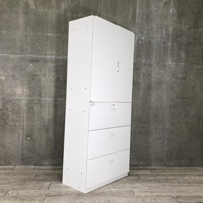 【T11】【商品入替のため、残り1台限り】イトーキ製 シンライン ホワイト W900xD450xH2140サイズ シリンダー錠 高品質で安心のスチールキャビネット! コレ1台で書類が一気に整理できます! 両開き+3段ラテラル 上下書庫セット!!