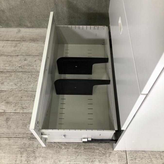 - 完備ベース、連結ビス、仕切り板が完備されている。