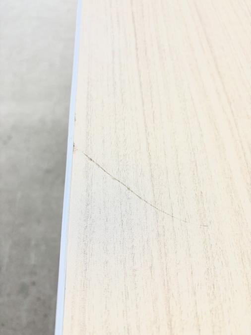 - 目立つ箇所複数あり深い傷・凹みが商品全体にある。(例、天板、幕板、棚板、サイド部分、脚部等にある。)