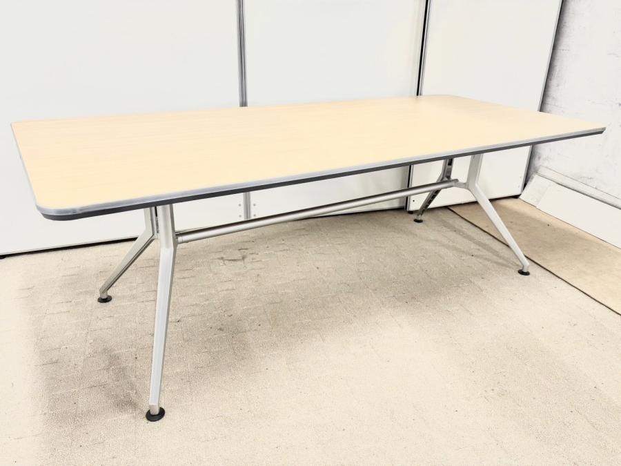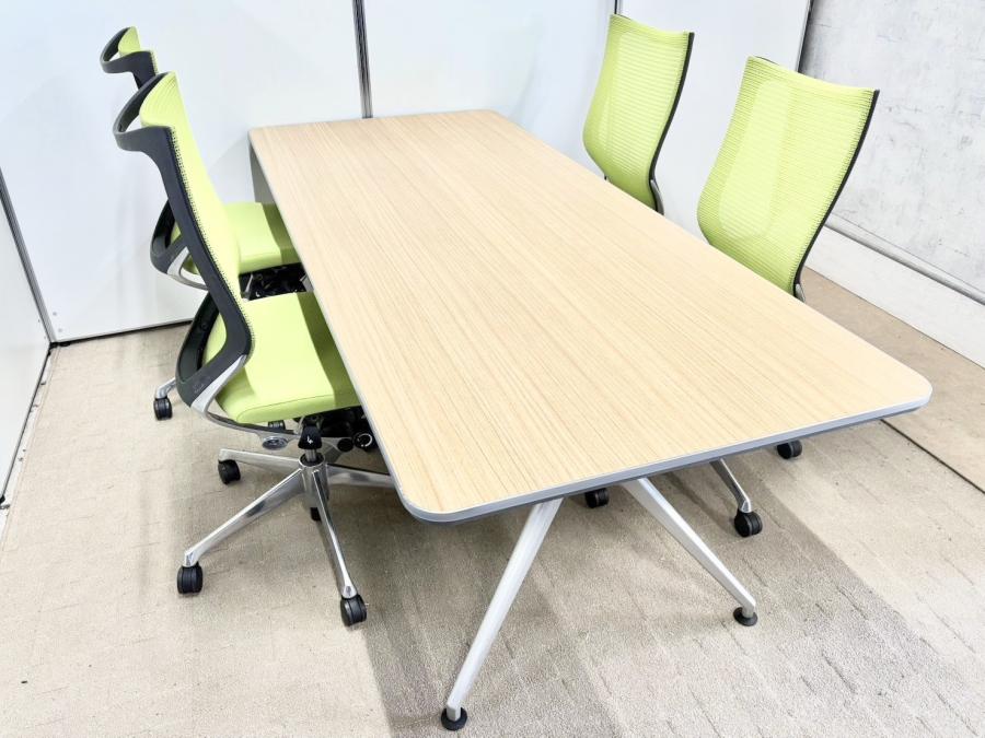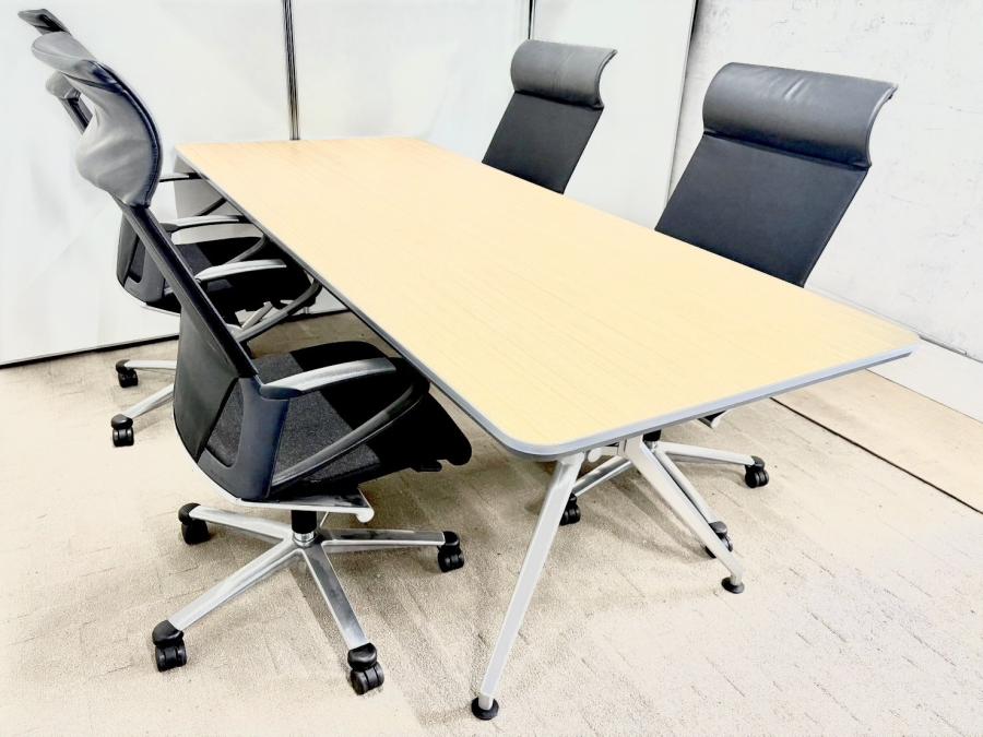 【定価約18万円】【シンプルなデザインのミーティングテーブル!】■イトーキ/DDシリーズ ■木目ナチュラル ■シルバー脚 ■2~4人使用向け!