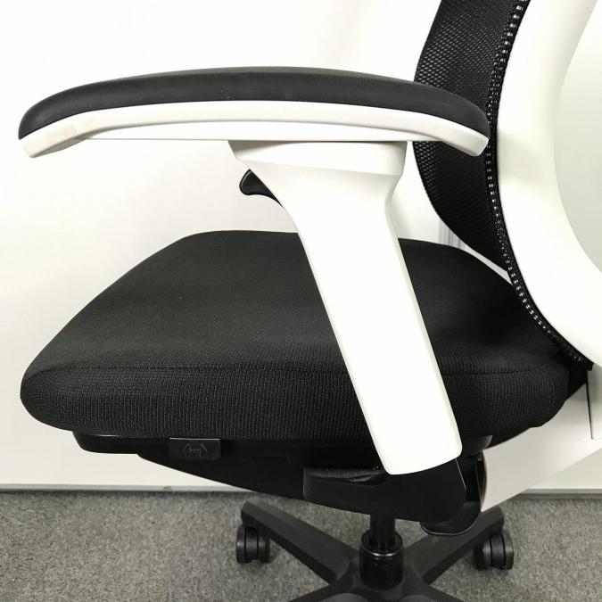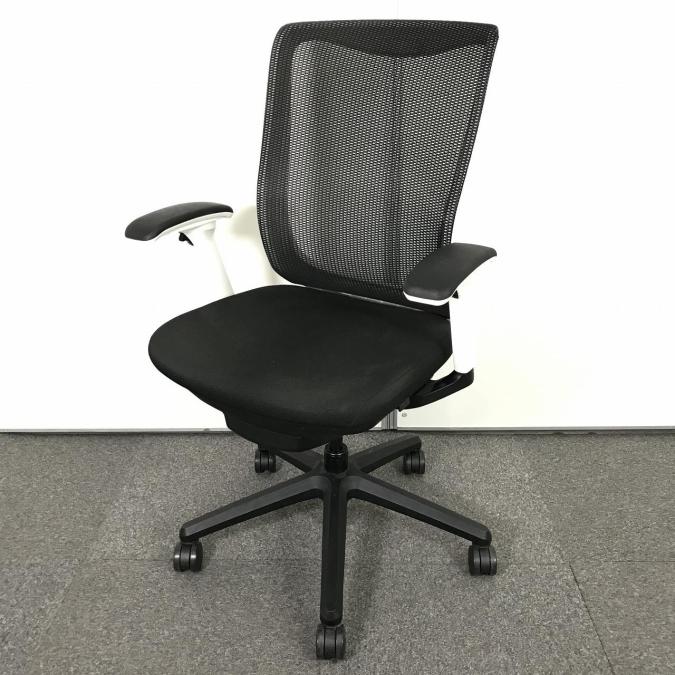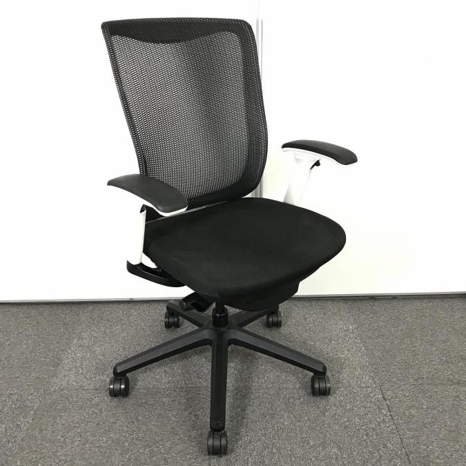 【背中をしっかり支え、包み込まれる快適なフィット感!】■ライオン(LION) レイオスチェア(Leios) 肘付 ハイバック ■可動肘 ■背面メッシュ ■ブラック/ホワイトシェル- 春日部・越谷店