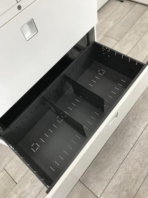 オフィスの必需品!書類をスッキリ整理できる容量の3段キャビネット取っ手がどの方向からでも開くマルチハンドル! ■オカムラ/レクトライン(Rectline)/ホワイト