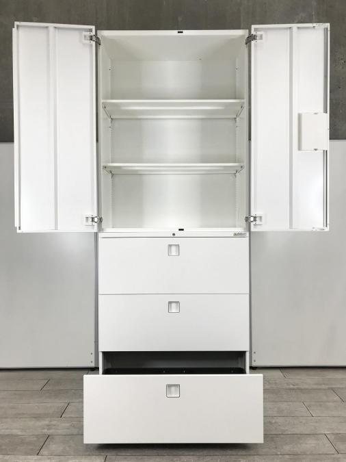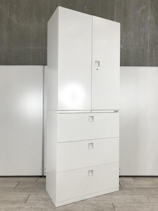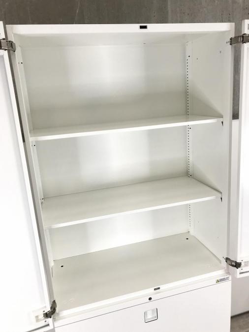 オカムラ レクトライン 3段ラテラル+両開き扉の書庫セット ホワイト シリンダー錠 鍵お付けします 人気商品