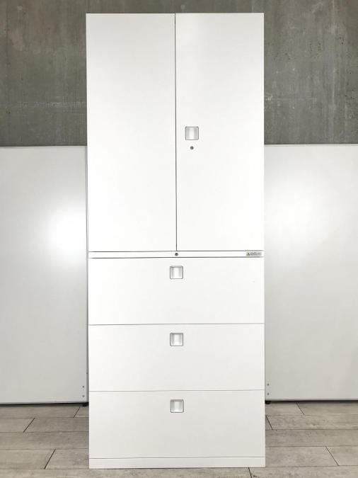 【オフィスの書類をスッキリ整理!大人気レクトラインの上下書庫セット!】■オカムラ(okamura)製 レクトラインシリーズ 両開き+3段ラテラル 書庫セット H2150㎜ ■シリンダー錠 ■ホワイト
