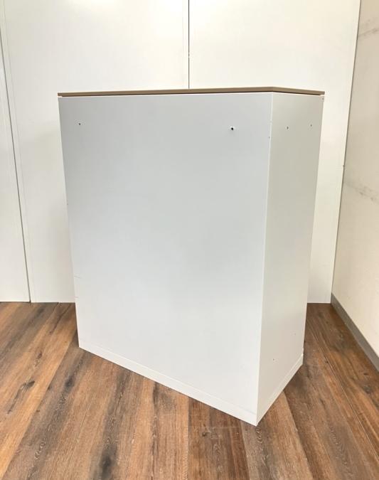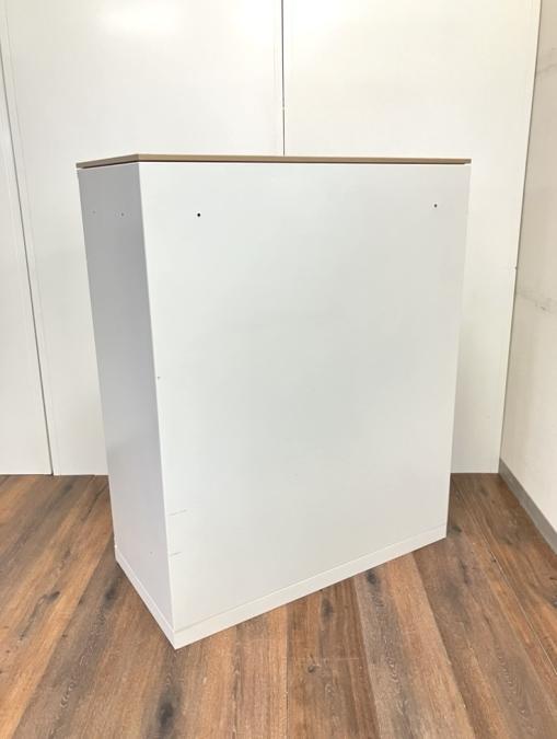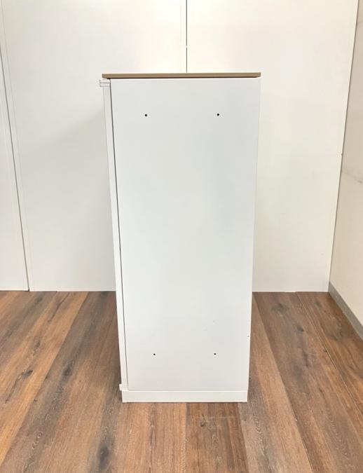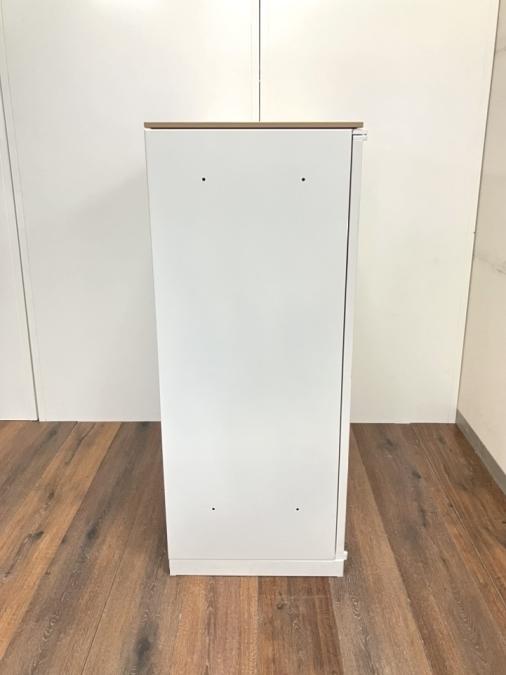 人気のホワイト色ナチュラル天板付、観音開き扉タイプの書庫です。